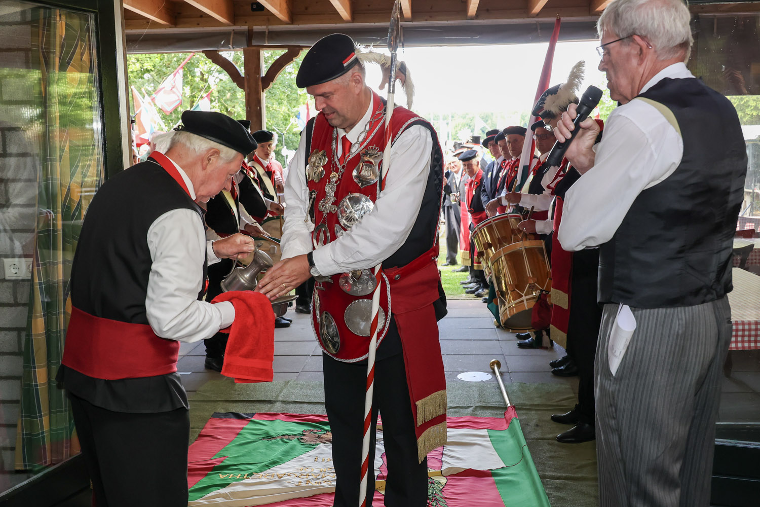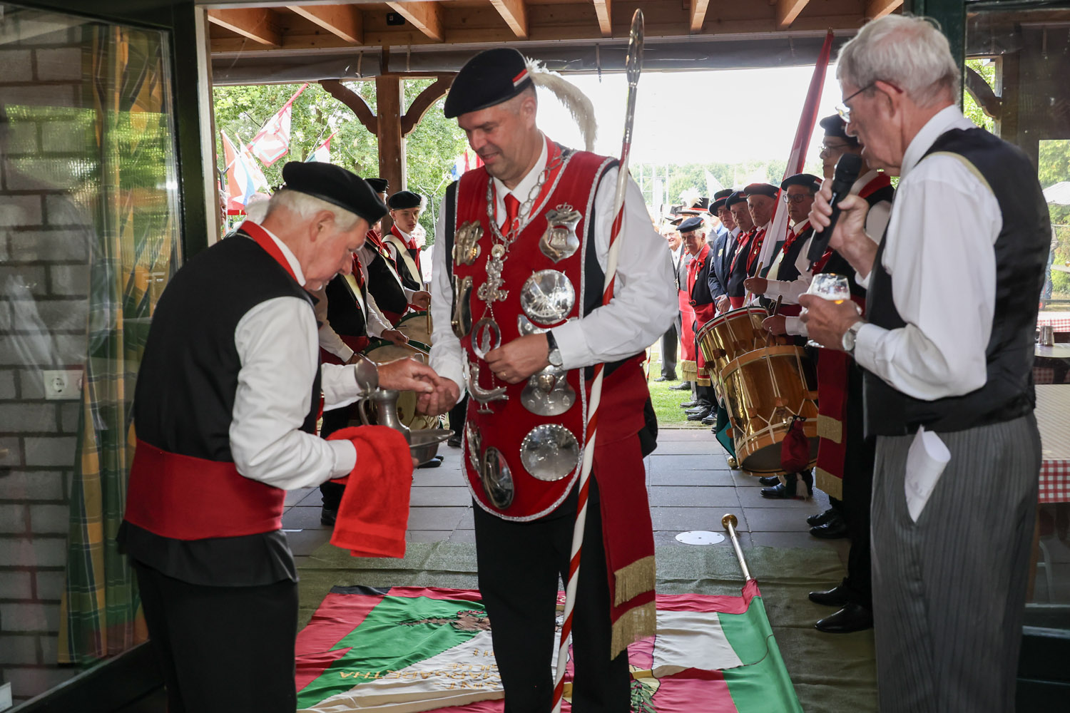 Tijdens de ledenvergadering van 7 september vond er een bijzonder moment plaats. Drie kinderen van wijlen Harrie Swinkels (bekend van de Végé-winkel) hebben het gildezilver van hun vader aan ons gilde overgedragen. Volgens de traditie wordt gildezilver dat door een lid wordt geschonken of nagelaten eigendom van het gilde.