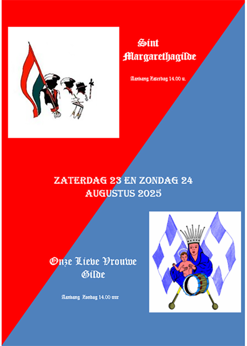 9:30uur aanvang Gildemis in de kerk gevolgd door een vendelgroet voor het kerkelijk gezag op het kerkplein.