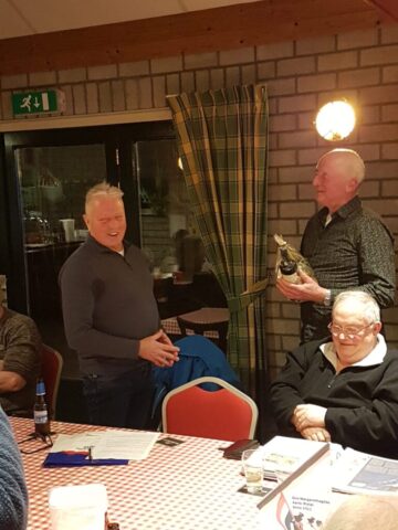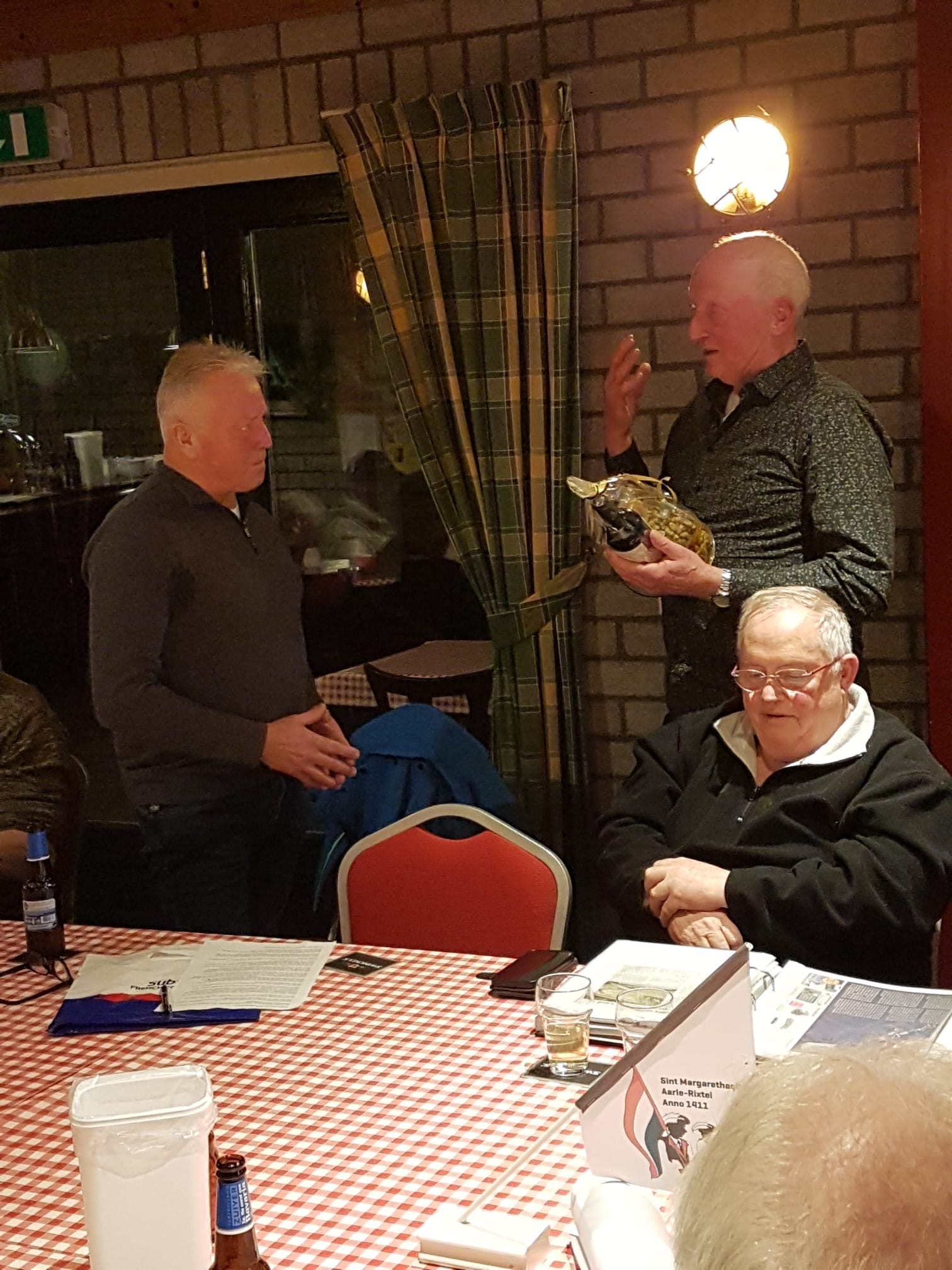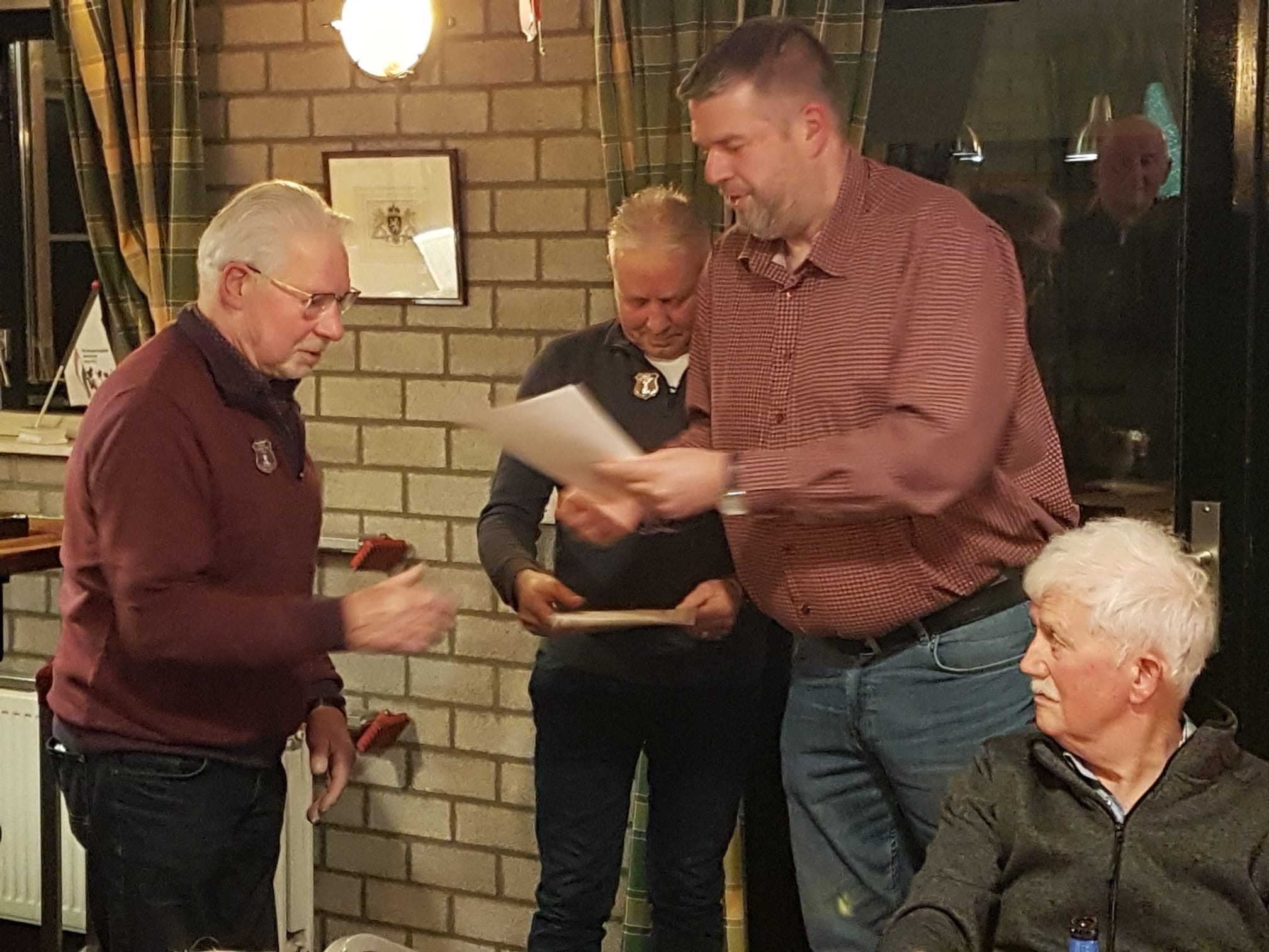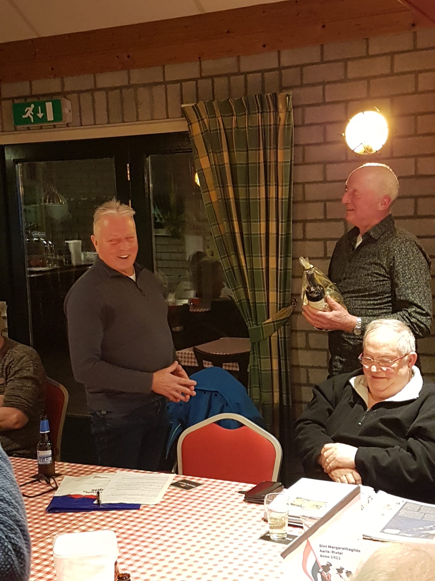 Naast een passend cadeau van het gilde ontvingen beide heren een zilveren schild van het gilde, dat hen werd opgespeld door onze hoofdman.